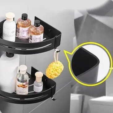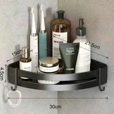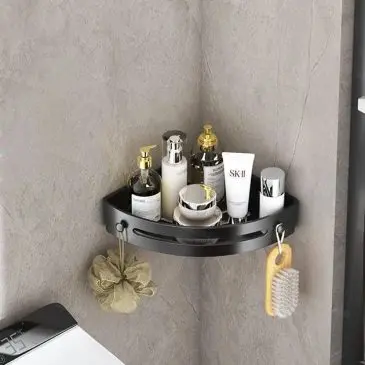 rak serbaguna bisa dipasang di sudut kamar mandi atau sudut dapur.