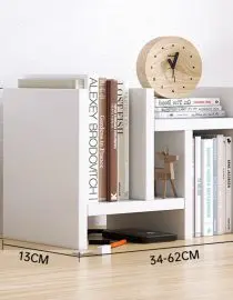 Small Bookshelf Rak buku ini dapat diletak diatas meja kerja ataupun meja belajar Anda berkat bentuknya yang tidak terlalu besar. Anda dapat menyimpan buku-buku belajar Anda dengan lebih rapi di rak buku ini. High Quality Material Rak ini terbuat dari bahan kayu tebal sehingga dapat menopang beban barang dan buku yang berat tanpa masalah. Decoration Dengan rakini, meja belajar Anda akan tampak lebih rapi dan enak untuk dilihat.