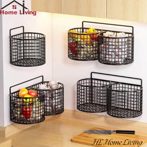 Rak Keranjang Bulat Tempel Dinding Rak Keranjang Bawang Tempat Penyimpanan Bumbu Dapur