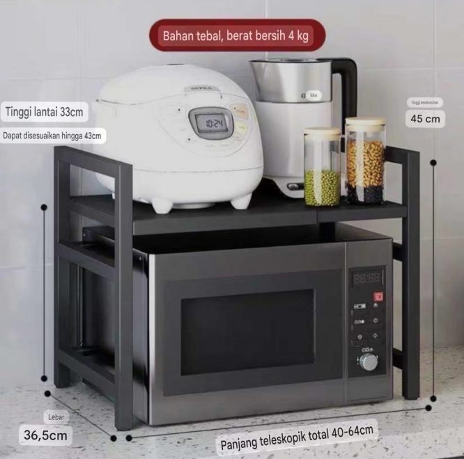 Rak Microwave Serbaguna Minimalis – Rak Dapur Teleskopik Bisa Diperpanjang 40-64cm Satu Lapis