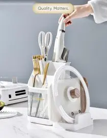 Gak perlu bingung, solusinya dengan rak panci ini, bisa di tempel di dinding atua bahkan taruh di lantai dekat westafel.
