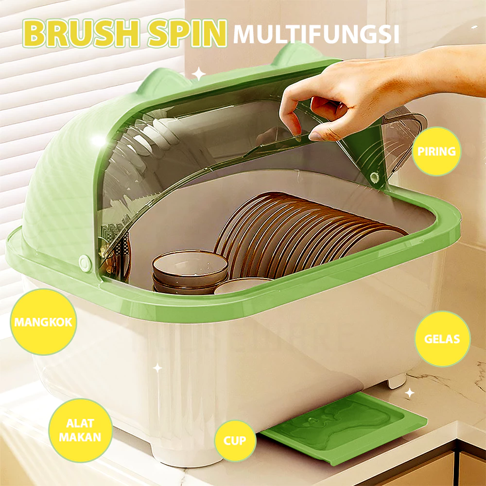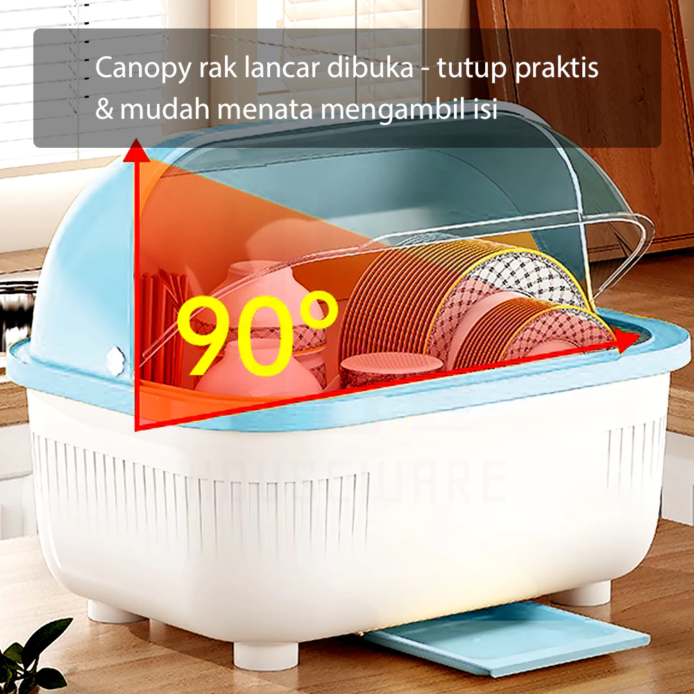 – Rak piring tertutup anti jamur, menjaga piring dan gelas bebas dari debu dan kotoran.