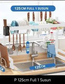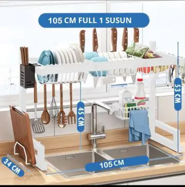 Rak Piring Wastafel Stainless Steel dengan aksesoris 105cm full 1 susun