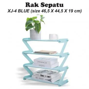 Rak Sepatu dan Sendal Zigzag Rak Besi Tiang Plastik 4 Tingkat