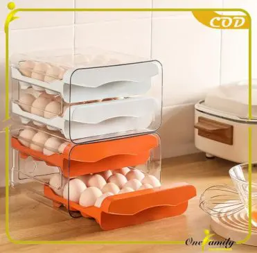 Rak penyimpanan telur berbahan plastic extra tebal yang kokoh dan tahan lama. Dengan desain lubang disetiap sisi sehingga sirkulasi udara tetap terjaga, anti-lembap sehingga telur tidak cepat rusak. Model yang cantik sehingga penyimpanan telur rapih, teratur, mudah dijangkau.