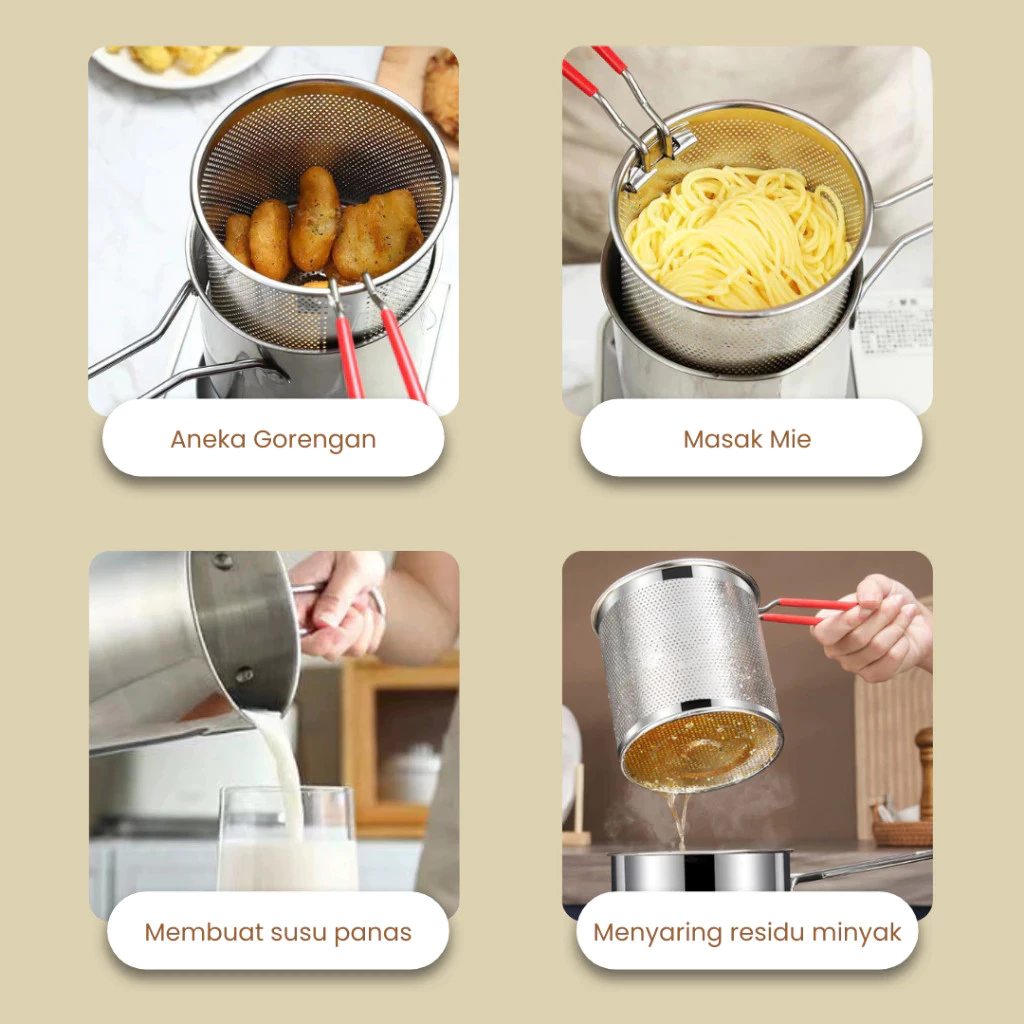 2 in 1 Multi Deep Fryer Panci Penggorengan Rebus Stainless Steel Saringan Makanan Panci Rebus Multifungsi