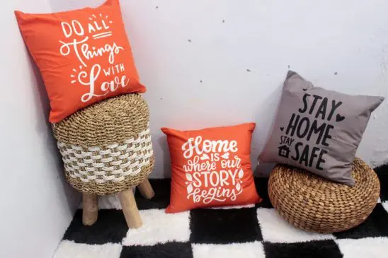deskripsi produk – Size asli setelah proses jahit : 40x40cm (1kg muat 24pcs). – Material Sarung Bantal : Katun (Halus & Dingin). – Rit Jepang di bagian bawah jadi bisa dilepas & dicuci. – Tulisan : Sablon Gold Dinar – Untuk variasi 1 sisi, sablon hanya 1 sisi depan saja. Bagian belakang : Katun sesuai warna.
