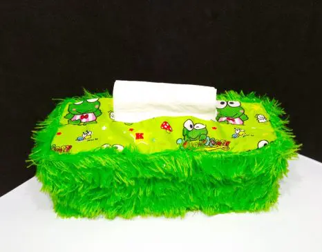 Sarung tempat tisu bulu rasfur motif karakter keroppi
