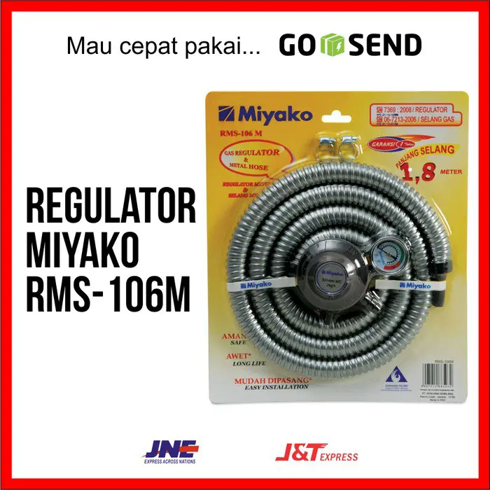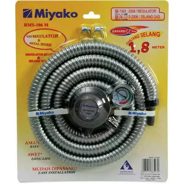 Selang Regulator Miyako RMS-106M Paket regulator dan selang satu set yang memudahkan Anda dalam penggunaan
