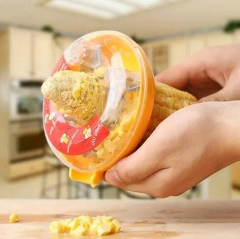 Cara penggunaan: masukan alat ini ke ujung jagung dan tekan sampai mencapai ujung bawah,