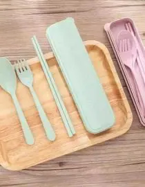 Set Alat Makan Sendok Garpu Sumpit + Tatakan Bahan Plastik Wheat Straw Food Grade