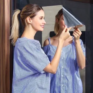 1. Setelah stiker ditempel pada dinding, Sebelum digunakan, sobek lapisan pelindung bagian depan permukaan cermin yang berwarna biru/abu-abu. ( note: banyak yang kelupaan/ tidak paham untuk melepas perekat depan sticker jadi sticker terlihat buram)
