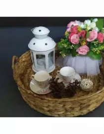 Taplak meja anyaman putih natural