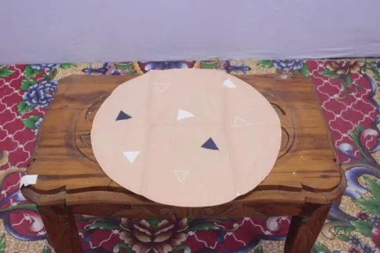 Taplak meja bulat Katun Motif 2 lapis bahan: Bahan atas katun CVC, bagian bawah dilapisi kain katun blacu putih ukuran 40cmx40cm