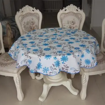 Taplak Meja Makan Bulat Motif Bunga Biru Material Peva Uk. Dia. 150cm