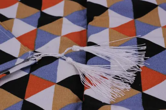Dipermanis juga dengan tassel kecil di kedua ujung taplak. Taplak meja ini dapat diaplikasikan sebagai taplak meja makan maupun taplak meja tamu yang minimalis.