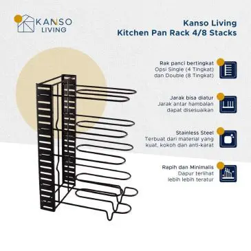 1x Kanso Living Kitchen Pan Rack 4 or 8 Stacks