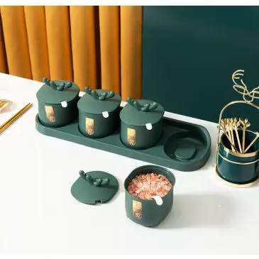 Rak ini di desain dengan 2/3/4 tempat bumbu dapur dalam 1 wadah dilengkapi dengan sendok di setiap tempat bumbunya dan 2 Tempelan untuk kamu tempel di dinding ataupun dapat di taruh di atas meja dapur (optional), Setiap Tempat Bumbu Dapurnya dilengkapi dengan Penutup yang rapat dengan desain tanduk rusa.