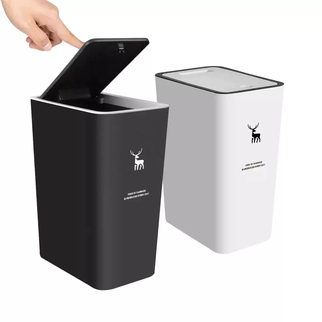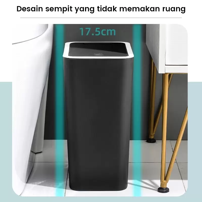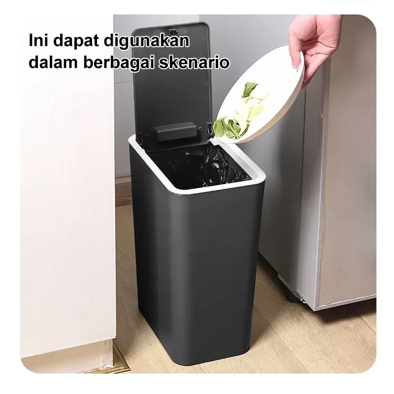 Tempat sampah plastik tertutup dengan tombol