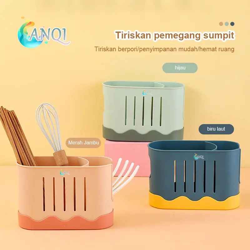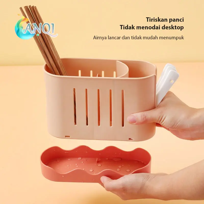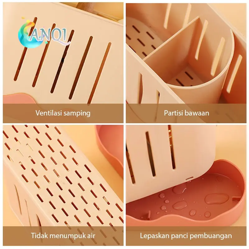 Tempat Sendok Anqi 2 Sekat Dengan Wadah Penampung Air Bahan Plastik