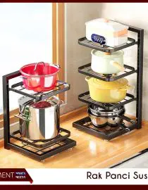 Rak Panci Nala Tempat Penyimpanan Alat Masak Stainless Steel 3 Tingkat