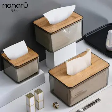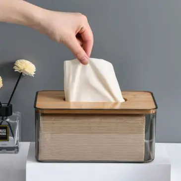 Tempat Tisu Transparan Dengan Tutup Kayu Size 18×11.8x10cm