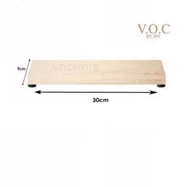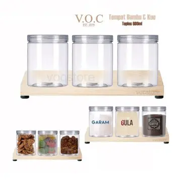 Berbahan dasar alas kayu jati belanda dengan ukuran panjang 9cm dan lebar 30 cm dengan ketebalan alas 1.5cm. Dilengkapi dengan alas karet 4 pcs dimasing-masing sudut agar wadah tidak mudah bergeser saat digunakan baik di dapur atau di ruang tamu anda sebagai toples kue.