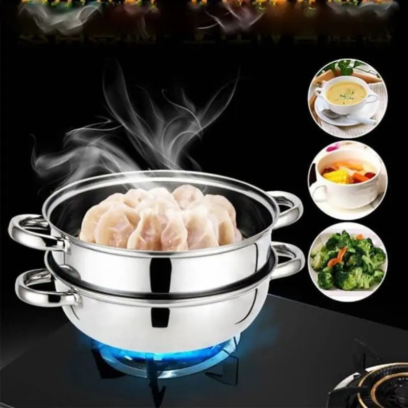 Tipe A Panci Kukus Panci Steamer 2 Tingkat Full Stainless Steel Uk. Dia 28cm Dengan Gagang Pegangan