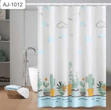 Tirai Kamar Mandi Material Peva 180x180cm Dengan Ring Kait Motif Cactus Garden