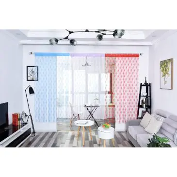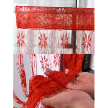 Tirai benang hadir dengan motif alfabet dan bunga. Tirai cantik berbentuk juntaian benang, cocok digunakan sebagai :