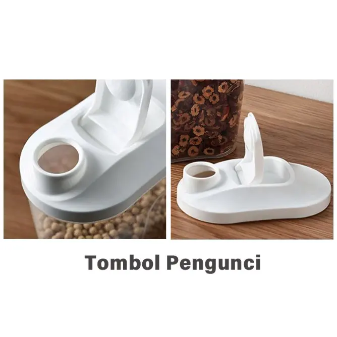 Container wadah makanan ini cocok untuk menyimpan makanan dalam waktu yang lama dan mencegah proses oksidasi pada makanan. Bahan plastik transparan sehingga bisa terlihat dari luar. Mudah untuk dicari. Penataan dapur menjadi lebih rapih, tertata dan terorganizer. Dilengkapi dengan takaran.