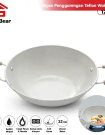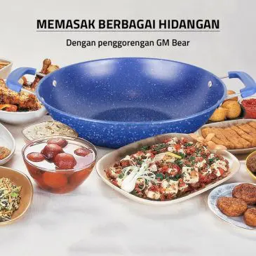 Wajan penggorengan atau wok dari GM Bear dengan diamter besar cocok untuk memasak porsi untuk sekeluarga. Dilengkapii handle anti panas. Wajan penggorengan 1238 di design ringan sehingga dapat diangkat dan diayun untuk mempermudah anda dalam memasak. Wajan penggorengan wok ini berbahan dasar Teflon sehingga anti lengket, mudah dibersihkan, awet dan tahan lama. Warna wok ini sangat cantik dan elegan untuk melengkapi peralatan dapur mu!