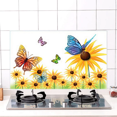 Wallpaper Dapur Anti Minyak dan Tahan Panas Motif Kupu Bunga Matahari Uk. 75x45cm