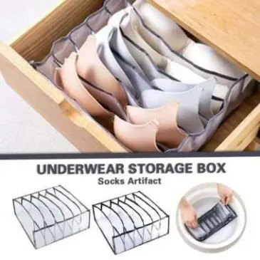 Box Tempat Pakaian Dalam 6 Grid Material Nylon Mesh 32x32x12cm