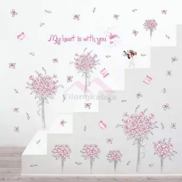 Stiker dinding pink flower group