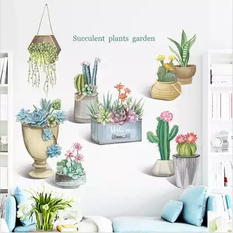 Stiker dinding plant garden potted cactus