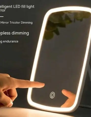 Cermin Rias LED Portable Touch Screen, Bisa Dicharge – Kaca Make Up Lampu Cas Tanpa Kabel